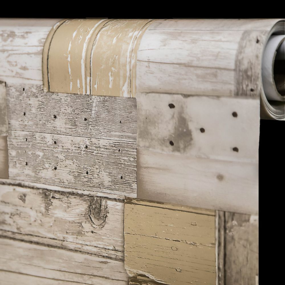 Omyvatelná PVC ubrusovina s podkladem z netkané textilie s motivem hnědého dřeva skládaného přes sebe s hladkým povrchem. Ubrus je dostupný v metráži o šířce 140cm.