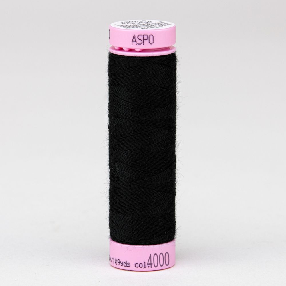 Univerzální hobby nit značky Amann z řady ASPO 120 v černé barvě. Polyesterové nitě z řady ASPO o síle 120 jsou univerzální šicí nitě pro domácnost, vyráběné v ČR. Jsou vhodné pro ruční i strojové šití všech druhů textilních materiálů z přírodních, směsových a plně syntetických vláken. Na úplety je doporučeno použít strečovou jehlu. Nitě ASPO jsou vysoce pevné - cca 990 CN, tažnost 12 %. Nitě mají přírodní vzhled, jsou odolné vůči oděru, bakteriím i plísním, jsou stálobarevné na světle a nesráží se při praní. Doporučená síla jehly je 70-90.