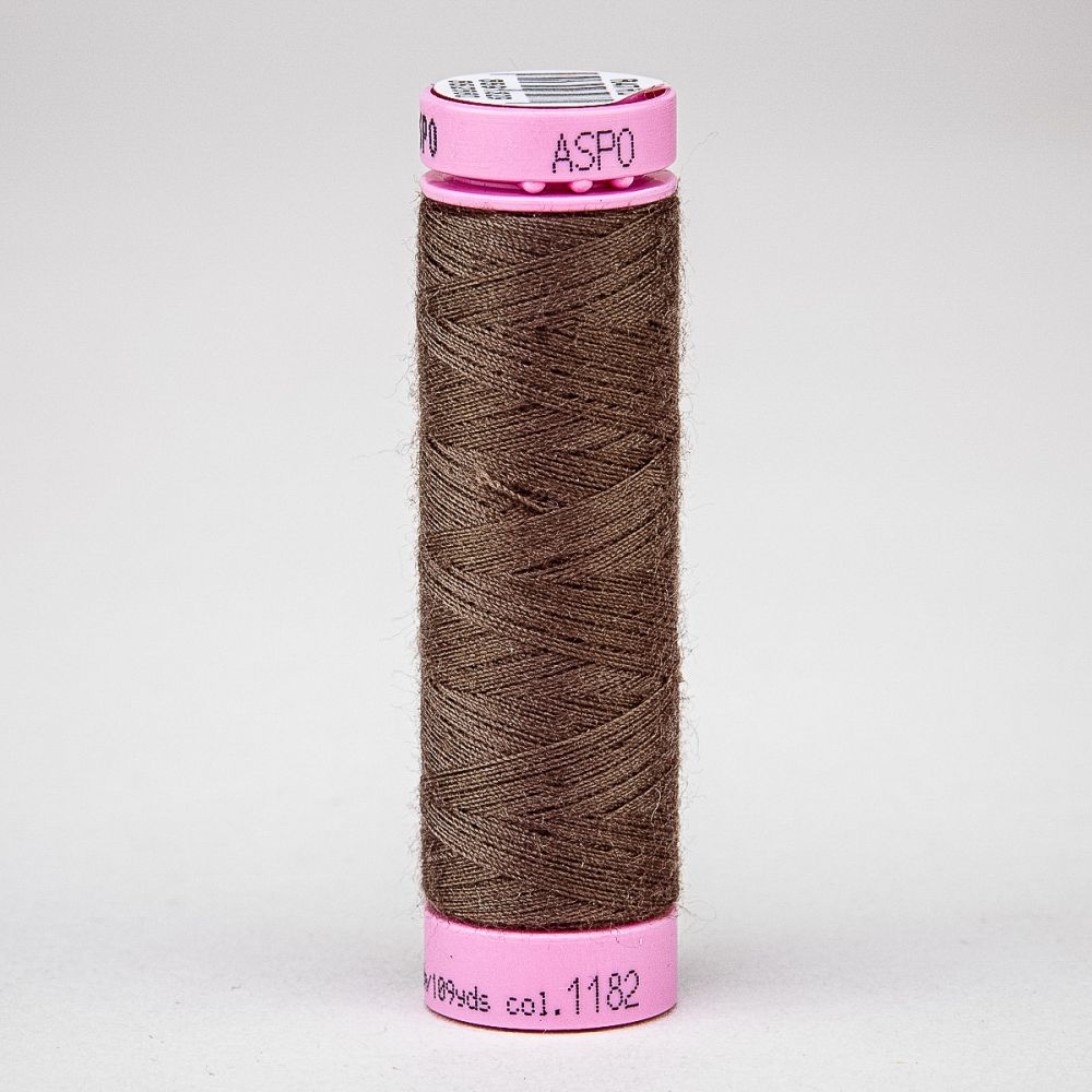Univerzální hobby nit značky Amann z řady ASPO 120 v hnědé našedlé barvě. Polyesterové nitě z řady ASPO o síle 120 jsou univerzální šicí nitě pro domácnost, vyráběné v ČR. Jsou vhodné pro ruční i strojové šití všech druhů textilních materiálů z přírodních, směsových a plně syntetických vláken. Na úplety je doporučeno použít strečovou jehlu. Nitě ASPO jsou vysoce pevné - cca 990 CN, tažnost 12 %. Nitě mají přírodní vzhled, jsou odolné vůči oděru, bakteriím i plísním, jsou stálobarevné na světle a nesráží se při praní. Doporučená síla jehly je 70-90.