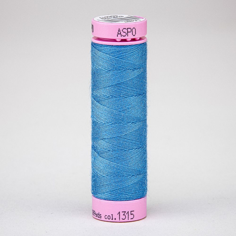 Univerzální hobby nit značky Amann z řady ASPO 120 v modré barvě. Polyesterové nitě z řady ASPO o síle 120 jsou univerzální šicí nitě pro domácnost, vyráběné v ČR. Jsou vhodné pro ruční i strojové šití všech druhů textilních materiálů z přírodních, směsových a plně syntetických vláken. Na úplety je doporučeno použít strečovou jehlu. Nitě ASPO jsou vysoce pevné - cca 990 CN, tažnost 12 %. Nitě mají přírodní vzhled, jsou odolné vůči oděru, bakteriím i plísním, jsou stálobarevné na světle a nesráží se při praní. Doporučená síla jehly je 70-90.