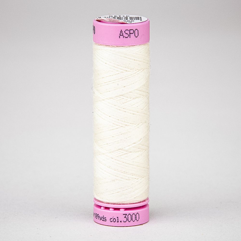 Univerzální hobby nit značky Amann z řady ASPO 120 v smetanové barvě. Polyesterové nitě z řady ASPO o síle 120 jsou univerzální šicí nitě pro domácnost, vyráběné v ČR. Jsou vhodné pro ruční i strojové šití všech druhů textilních materiálů z přírodních, směsových a plně syntetických vláken. Na úplety je doporučeno použít strečovou jehlu. Nitě ASPO jsou vysoce pevné - cca 990 CN, tažnost 12 %. Nitě mají přírodní vzhled, jsou odolné vůči oděru, bakteriím i plísním, jsou stálobarevné na světle a nesráží se při praní. Doporučená síla jehly je 70-90.
