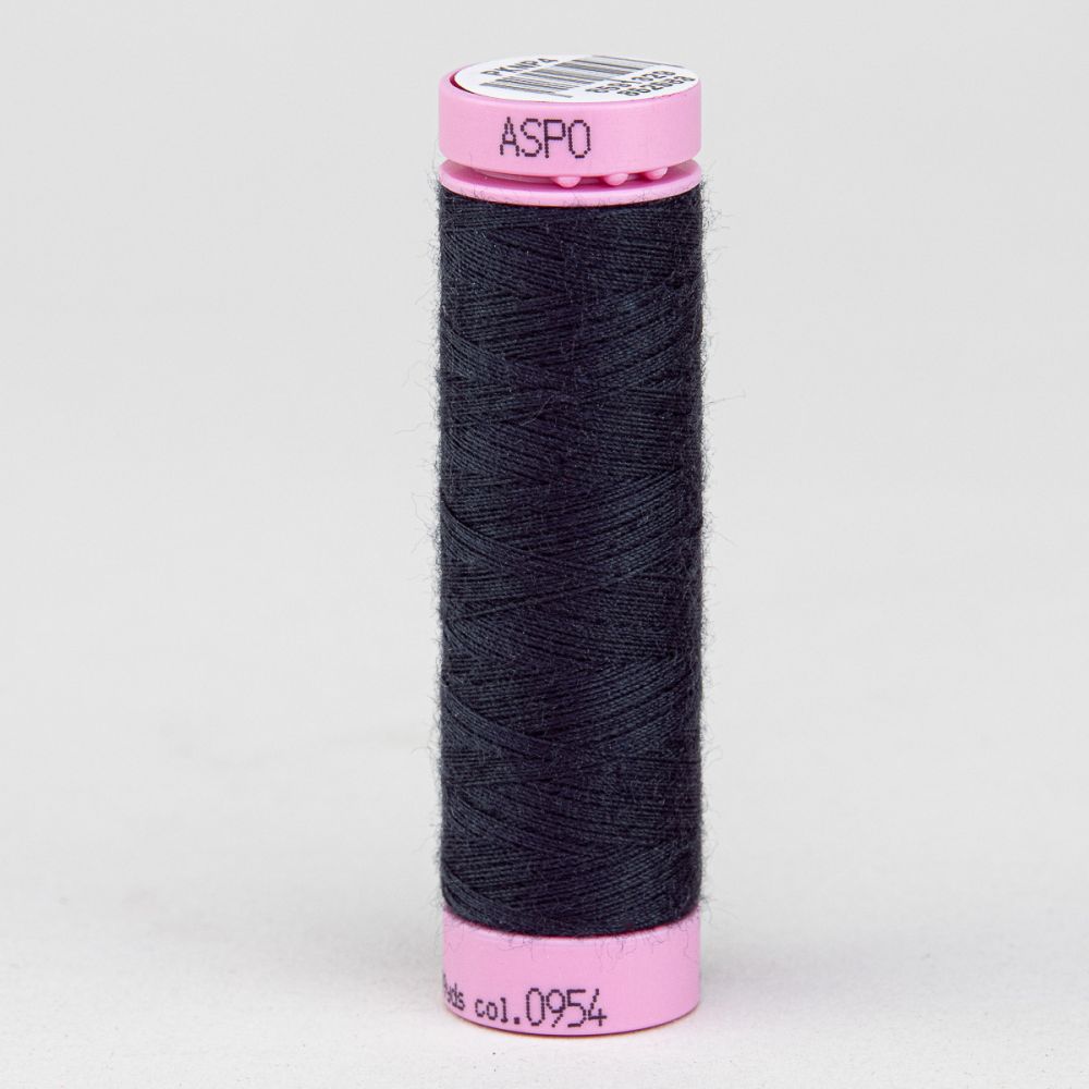 Univerzální hobby nit značky Amann z řady ASPO 120 v temné modré barvě. Polyesterové nitě z řady ASPO o síle 120 jsou univerzální šicí nitě pro domácnost, vyráběné v ČR. Jsou vhodné pro ruční i strojové šití všech druhů textilních materiálů z přírodních, směsových a plně syntetických vláken. Na úplety je doporučeno použít strečovou jehlu. Nitě ASPO jsou vysoce pevné - cca 990 CN, tažnost 12 %. Nitě mají přírodní vzhled, jsou odolné vůči oděru, bakteriím i plísním, jsou stálobarevné na světle a nesráží se při praní. Doporučená síla jehly je 70-90.
