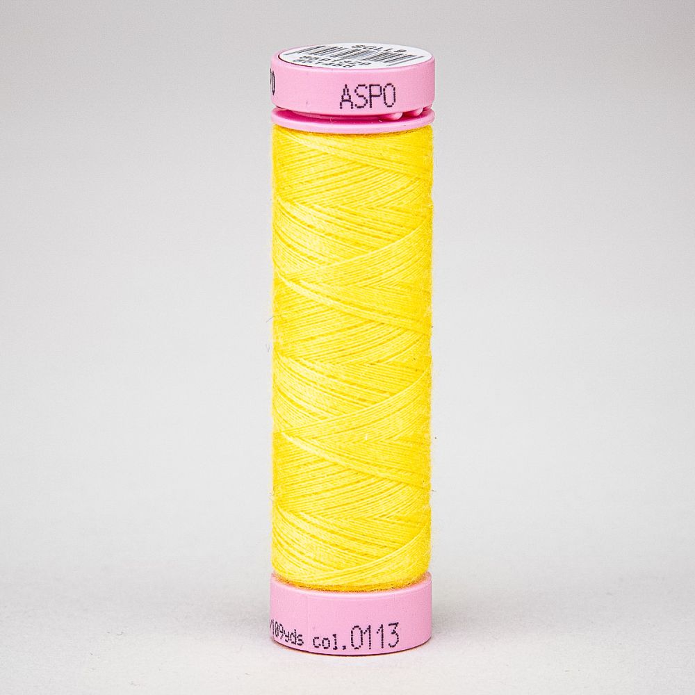 Univerzální hobby nit značky Amann z řady ASPO 120 v žluté barvě. Polyesterové nitě z řady ASPO o síle 120 jsou univerzální šicí nitě pro domácnost, vyráběné v ČR. Jsou vhodné pro ruční i strojové šití všech druhů textilních materiálů z přírodních, směsových a plně syntetických vláken. Na úplety je doporučeno použít strečovou jehlu. Nitě ASPO jsou vysoce pevné - cca 990 CN, tažnost 12 %. Nitě mají přírodní vzhled, jsou odolné vůči oděru, bakteriím i plísním, jsou stálobarevné na světle a nesráží se při praní. Doporučená síla jehly je 70-90.
