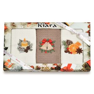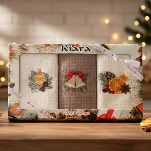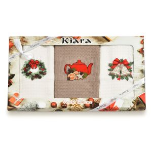 Utěrka KIARA VÁNOCE 20 vaflová vyšívaná, dárkové balení, věneček se šiškami na bílé, 1 kus 50x70cm