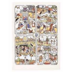 Bavlněné utěrky s kresleným vzorem v typickém ladovském stylu. Utěrky jsou ve vícebarevném provedení podkladu v rozměru 50x70cm. Utěrky mají jednostranný vzor všech 12 měsíců v roce a jsou vyrobeny ze 100% bavlny. Utěrky jsou v dárkovém balení po 12 kusech, každý měsíc má svůj typický vzor.