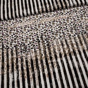 Úpletové (jersey) látky se používají na výrobu šatů, sukní, čepic a nákrčníků, dále na trička, topy, mikiny, kalhoty či tepláky a další. Látka je vyrobena v kombinaci 95% viskózy a 5% elastanu. Je tedy elastická a pružná.