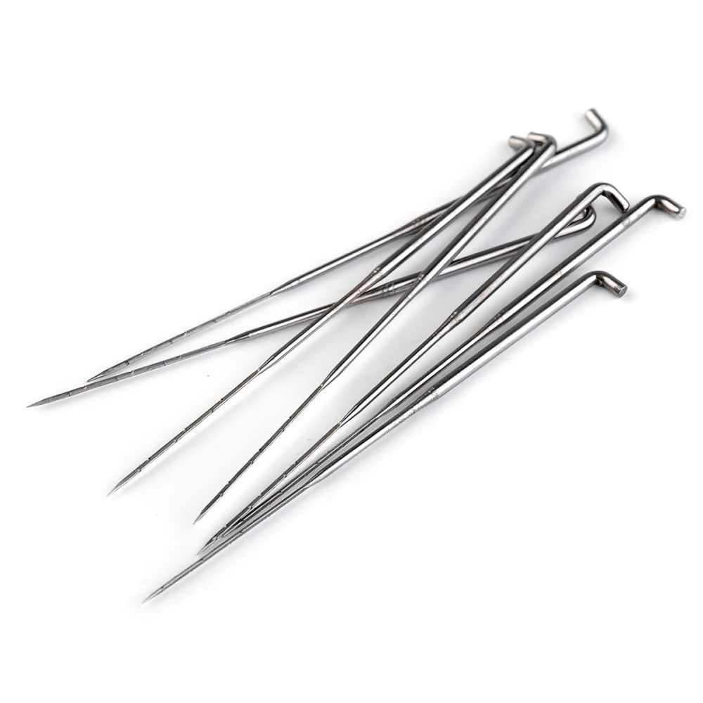 Sada kovových jehel na plstění v délce 7,8cm. Souprava obsahuje 7 kusů jehel v jedné velikosti M - průměr 0,6 mm. Jehly jsou vyrobeny z kvalitního niklu a mají po stranách drobné drážky, které zachytávají vlákna plstící vlny a tím je spletou. Silná jehla se používá na začátku plstění, nejtenčí slouží k dodělání jemných detailů.