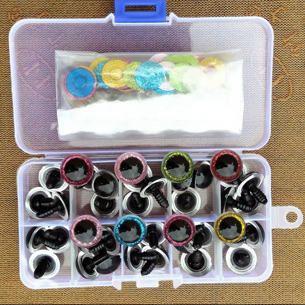 Bezpečnostními oči z plastu v průměru 16mm s lesklými podložkami v různých barvách v plastové krabičce. Oči jsou vhodné pro výrobu hraček, dekorací a další doplňky. Díky bezpečnostní zarážce proti vypadnutí, jsou oči odolnější vůči vytrhnutí nebo sloupnutí z výrobku. Cena je za 1 balení včetně krabičky. Balení obsahuje 30 kusů očí s podložkami a zarážkami.