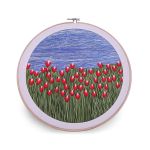 Vyšívací předloha, obrázek na vyšívání 70244/2051, ptáček 3, béžovo-zelená, 15x15cm