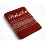Froté ručník S VÝŠIVKOU BABIČKA, tmavá terra, 50x100cm