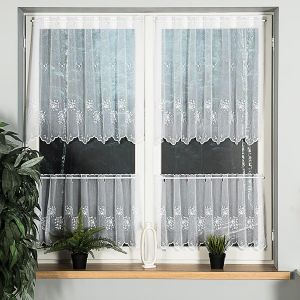 Metrážová šifonová záclona (voál) je velmi jemná a vysoce kvalitní tkaná záclona v bílé barvě s vyšívanými bílými čtverečky, zakončená zátěžovým olůvkem. Záclona je vyrobena ze 100% polyesteru a je dostupná v různých výškách. Výška záclony je měřena v nejdelším místě.