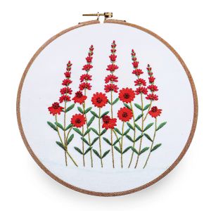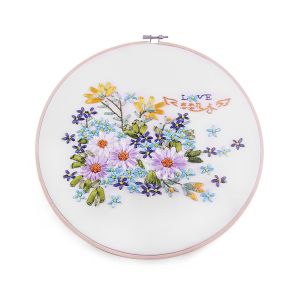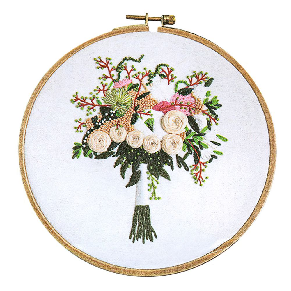 Sada na vyšívání s motivem krémovo-zelené kytice. Vyšívá se na předtištěnou tkaninu pomocí příze mouline (mulinka). Vyšívací sada obsahuje vyšívací tkaninu s předlohou, sadu barevných přízí, obrázkový návod a vyšívací jehly. Rozměr samotného obrázku je 12 x 15,2 cm. Dodáváno v dárkovém balení v podobě tvrdé, papírové obálky o rozměru 15 x 22 cm. Vyšívací kruh není součástí balení. Lze použít kruhy o průměru max. cca 21 cm.