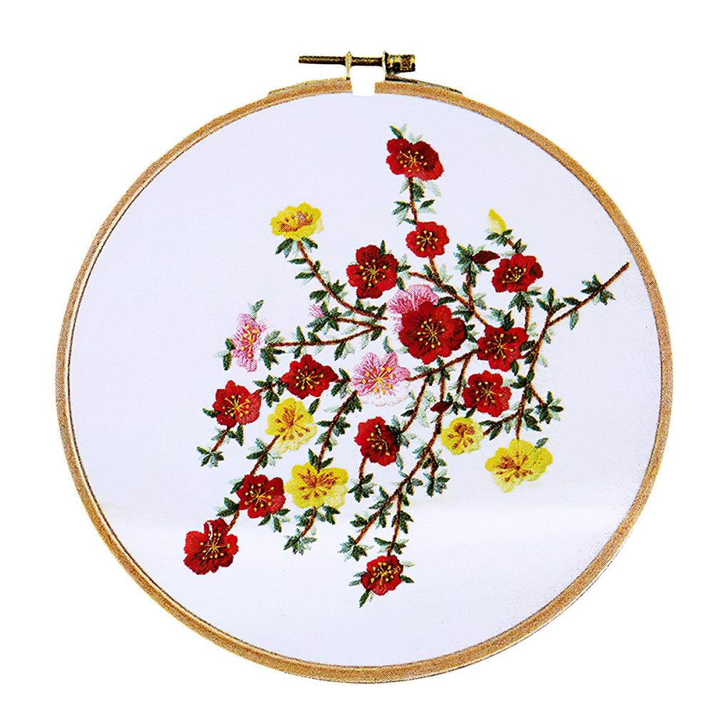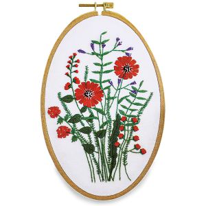 Sada na vyšívání s motivem červeno-žluté kytice. Vyšívá se na předtištěnou tkaninu pomocí příze mouline (mulinka). Vyšívací sada obsahuje vyšívací tkaninu s předlohou, sadu barevných přízí, obrázkový návod a vyšívací jehly. Rozměr samotného obrázku je 12 x 15,2 cm. Dodáváno v dárkovém balení v podobě tvrdé, papírové obálky o rozměru 15 x 22 cm. Vyšívací kruh není součástí balení. Lze použít kruhy o průměru max. cca 21 cm.