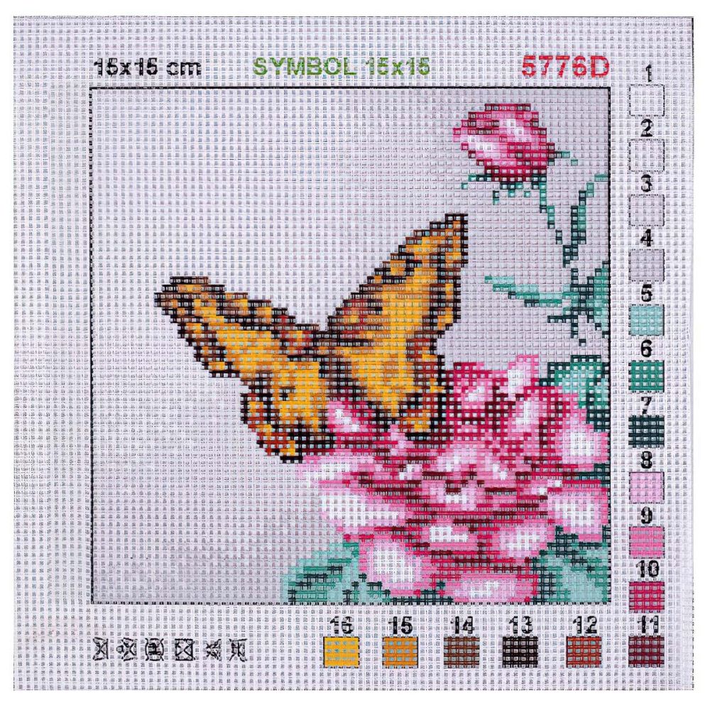 Vyšívací předloha, obrázek na vyšívání 020860/2, růže a motýl, 15x15cm