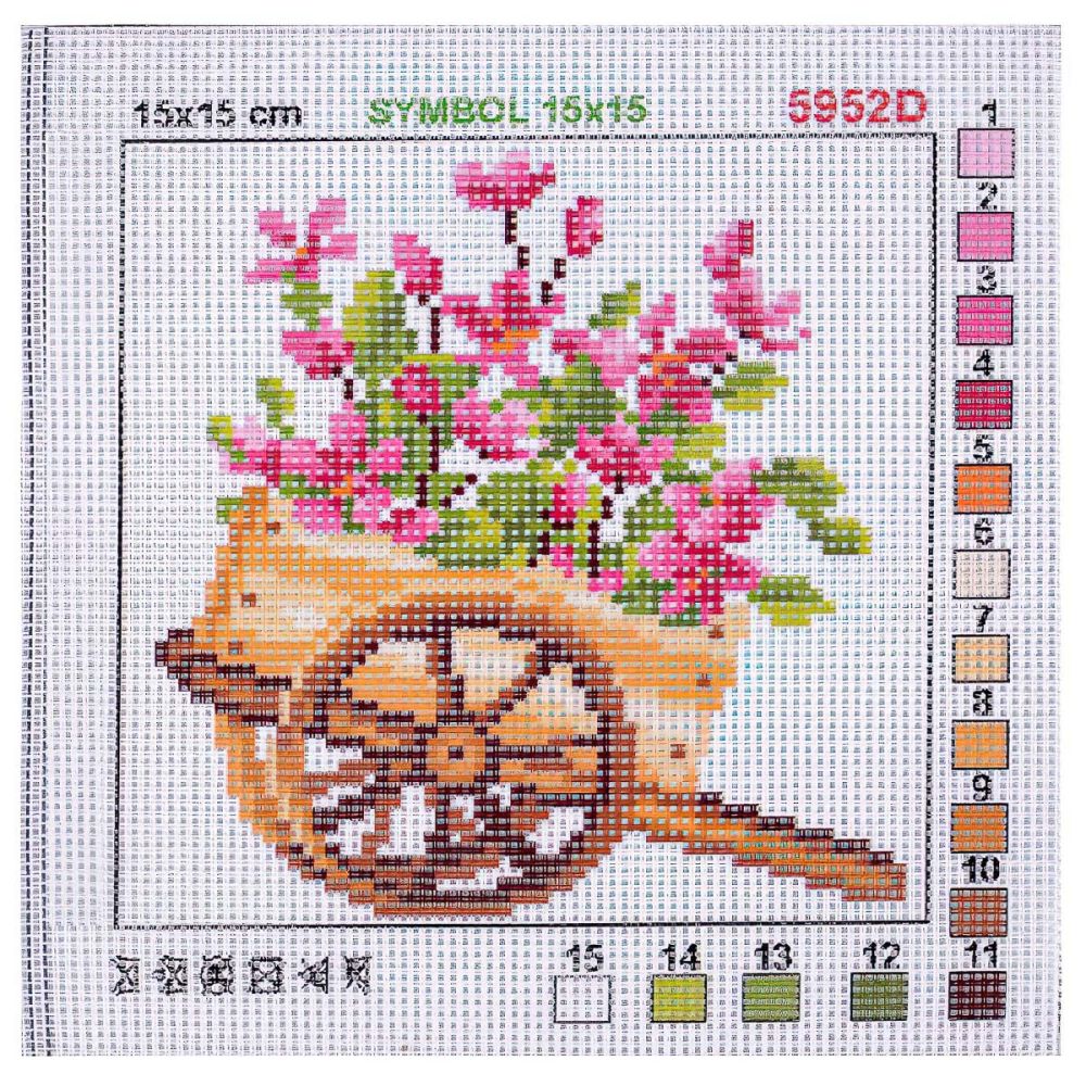 Vyšívací předloha, obrázek na vyšívání 020860/3, vozík s květinami, 15x15cm