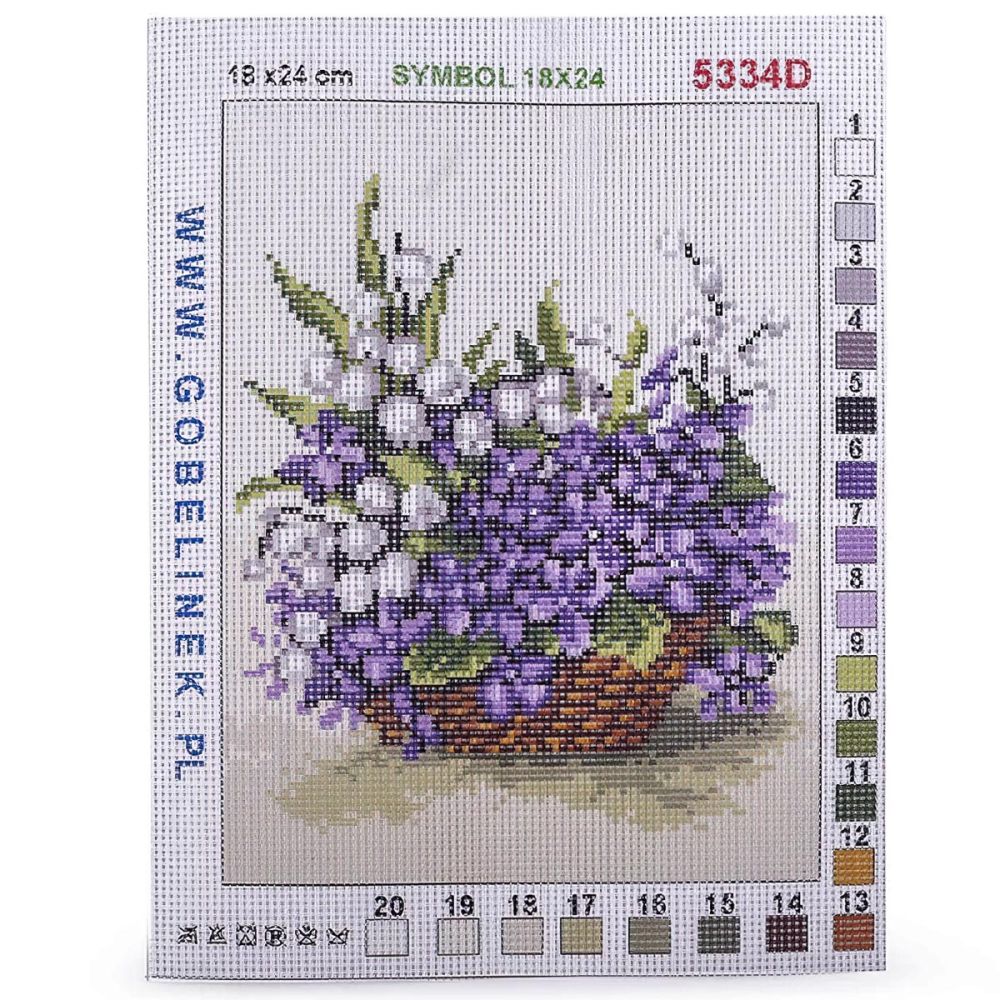 Vyšívací předloha s motivem fialových kytiček. Předloha na vyšívání ze 100% bavlny je vhodná zejména na křížkový steh, nejlépe při použití přízí mouline (mulinka), které na výšivce nejlépe vyniknou. Obrázek na vyšívání má rozměr 18 x 24 cm, celá předloha má obdélníkový rozměr 22,7 x 29,5 cm.