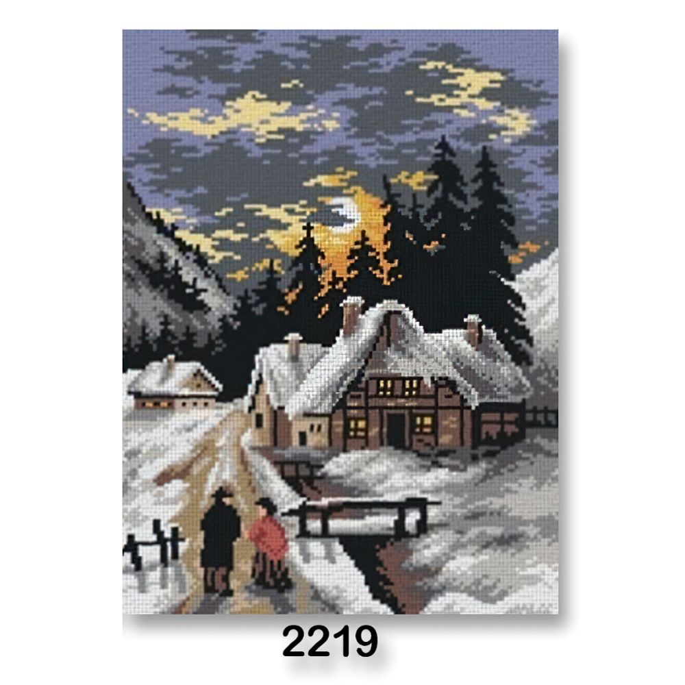 Vyšívací předloha s motivem zasněžené horské vesničky v šedých odstínech. Předloha na vyšívání ze 100% bavlny je vhodná zejména na křížkový steh, nejlépe při použití přízí mouline (mulinka), které na výšivce nejlépe vyniknou. Obrázek na vyšívání má rozměr 30 x 40 cm.