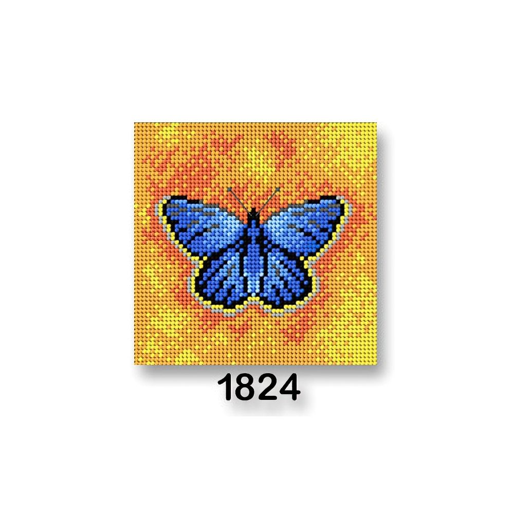 Vyšívací předloha, obrázek na vyšívání 70244/1824, motýl 3, modrý na žluté, 15x15cm
