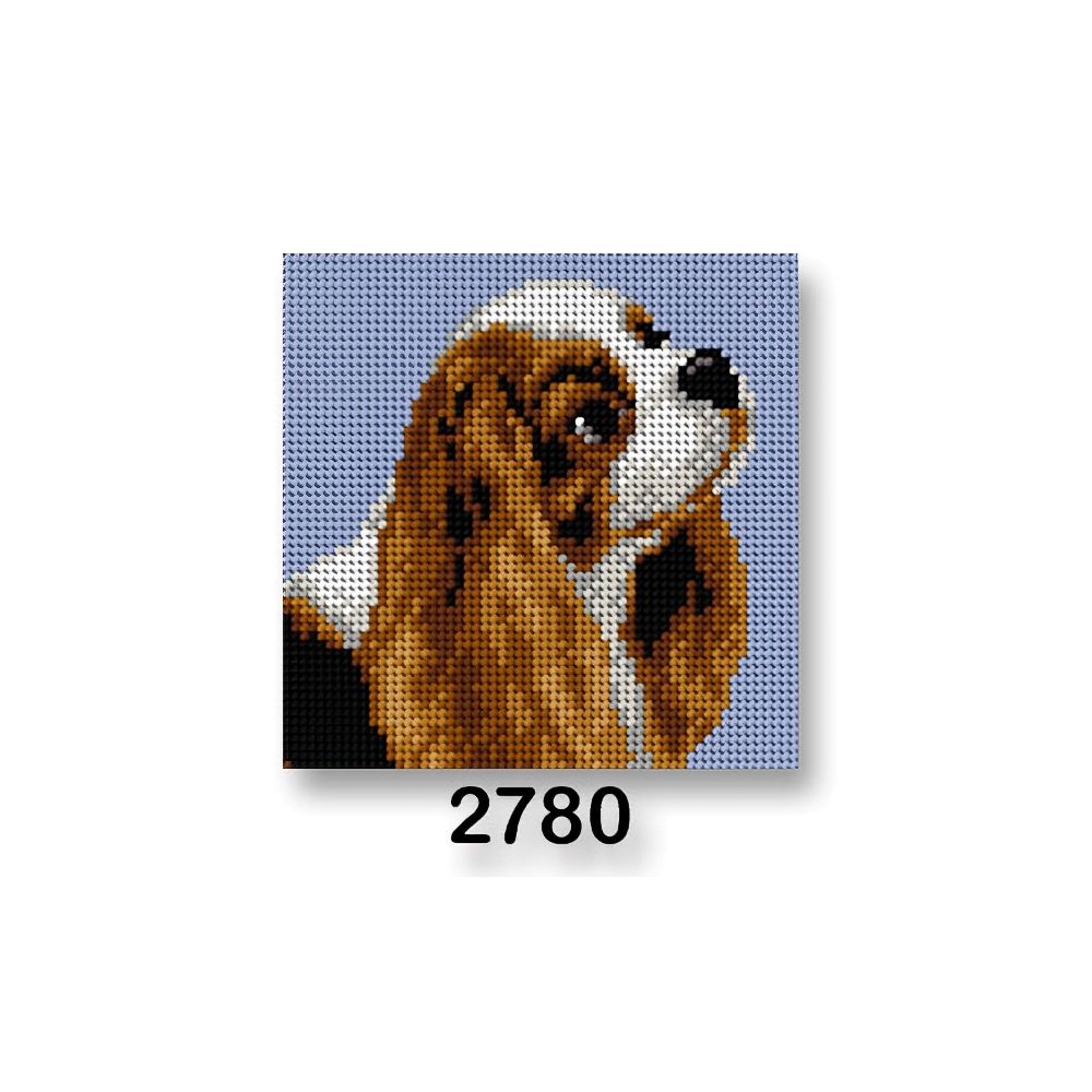 Vyšívací předloha, obrázek na vyšívání 70244/2780 King Charles Spaniel, pes na modré, 15x15cm