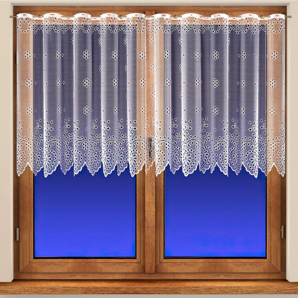 Metrážová žakárová vitrážová záclona tkaná do panelů s florálním vzorem ornamentů na bílém podkladě, s bordurou. Záclona má v horní části pevný okraj s dírkami pro navlečení na tyč. Jeden panel má šířku cca 15cm, proto doporučujeme objednávat násobky cca 15 cm, abychom Vám odeslali záclonu neprostřiženou. Záclona je vyrobena ze 100% polyesteru a je dostupná v různých výškách. Výška záclony je měřena v nejdelším místě. Šířku záclony zadejte do kolonky "Množství"