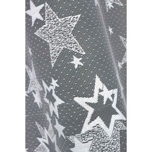 Metrážová žakárová záclona v bílé barvě se zimním vánočním vzorem hvězd, zakončená bordurou. Záclona je vyrobena ze 100% polyesteru a je dostupná v různých výškách. Výška záclony je měřena v nejdelším místě. Vitrážové záclony jsou opatřeny v horní části oky na navlečení na tyč a jsou tkané do panelů šířka cca 13cm, po ustřižení jsou již záclony zapravené