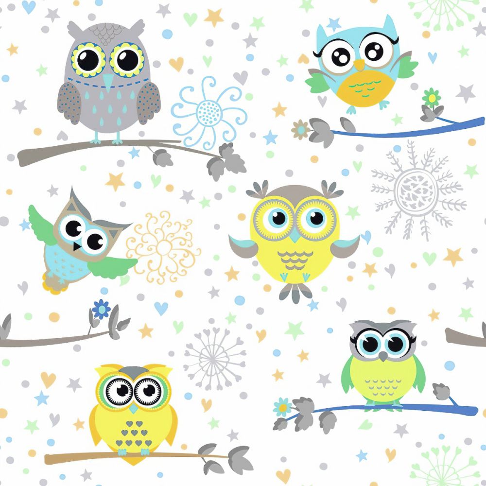 Zatemňovací neboli "blackoutová" dekorační látka s vysokou zastiňovací schopností s dětským vzorem zelených a žlutých soviček na větvi na bílém podkladu. Látka na závěsy (závěsovina) je oboustranná, druhá strana je jednobarevná bílá. Zatemňovací závěsy mají mimo zastínění také termoizolační vlastnost - zabraňují úniku tepla z místnosti a tím pomáhají v létě udržet uvnitř nižší teplotu, než je venku, a v zimě naopak teplo zadržovat uvnitř a nepropouštět ven. Látka je v metráži v šířce 150cm a vyrobena ze 100% polyesteru (200 g/m2). Celkovou délku (výšku) zadejte do kolonky množství.