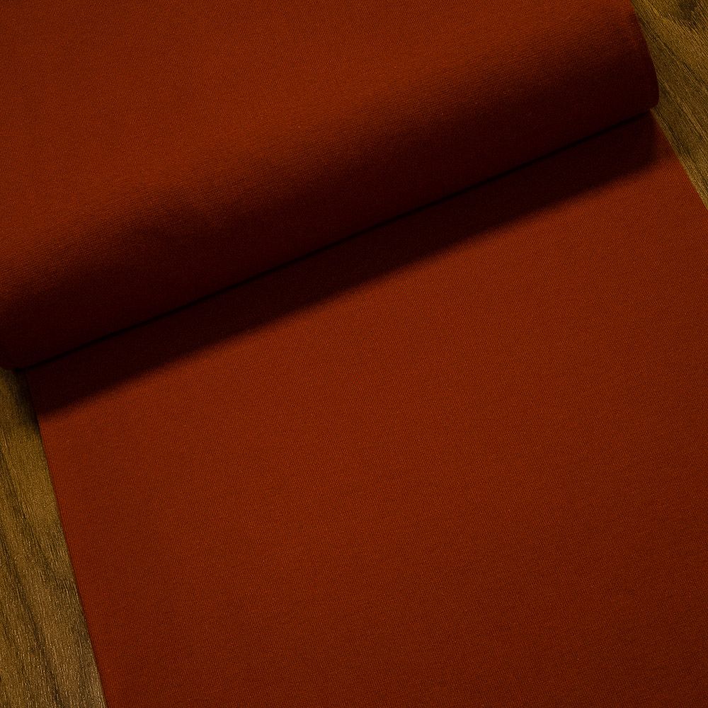 Elastický bavlněný (bio bavlna) jemně žebrovaný náplet/úplet v terakotě barvě. Jedná se o tunel s obvodem 70 cm, látka je tedy ve dvojité šířce 35 cm. Úplet je vyroben z 95% bavlny a 5% elastanu (gramáž 275g/m2) a je z obou stran stejný.