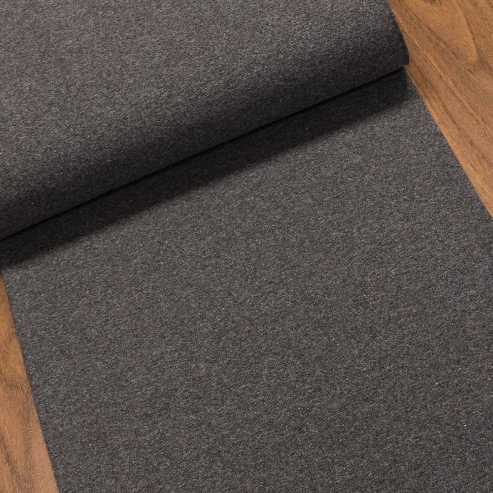 Elastický bavlněný žebrovaný náplet/úplet v melírované šedé barvě. Jedná se o tunel s obvodem 70 cm, látka je tedy ve dvojité šířce 35 cm. Úplet je vyroben z 95% bavlny a 5% elastanu (gramáž 275g/m2) a je z obou stran stejný.